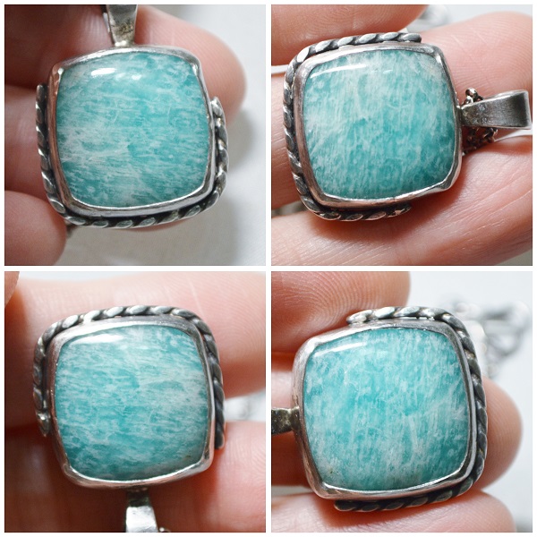 -硫化純銀 Oxidized Silver, 綠色亞馬遜石 Green Amazonite