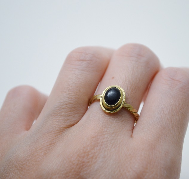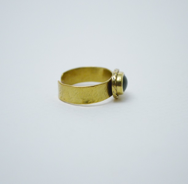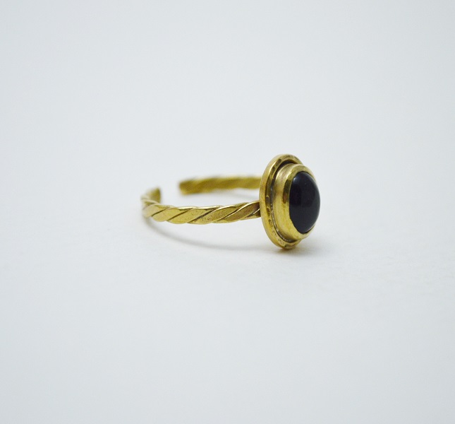 [簡單系列-黑曜石‧黃銅開放戒圍戒指 Simple Series-Black Obsidian‧Brass Open Ring-Type1]