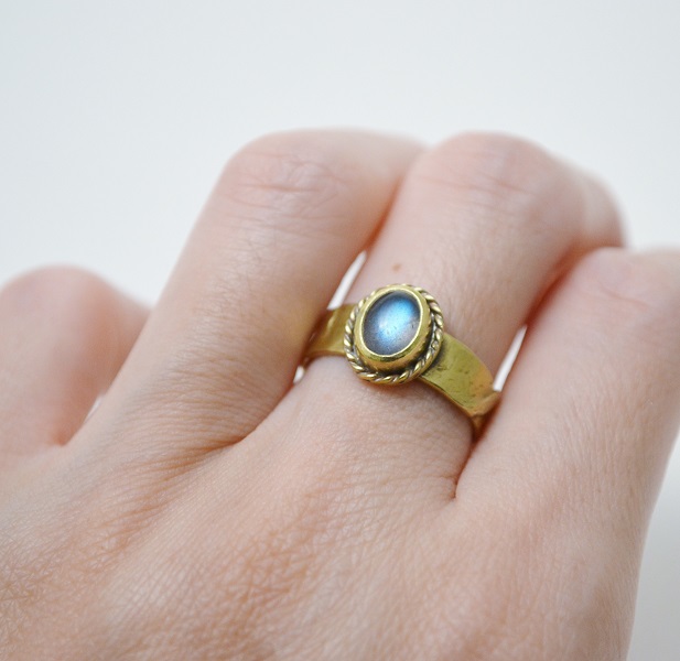 [折疊系列-27號之一‧藍暈拉長石‧黃銅開放戒圍戒指 fold no.27-1‧blue labradorite Brass Open Ring]