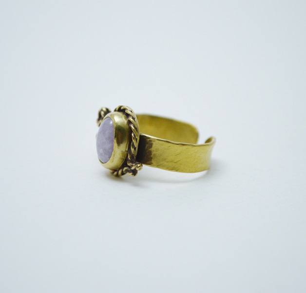 [禮物系列-孔賽石(紫鋰輝石)-黃銅銅開放戒圍戒指 Gift Series-Kunzite-Brass Open Ring]