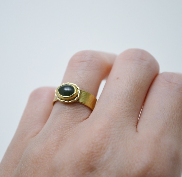 [簡單系列-深墨綠台灣玉-黃銅銅開放戒圍戒指 Simple Series-Dark Green Taiwan Jade-Brass Open Ring]