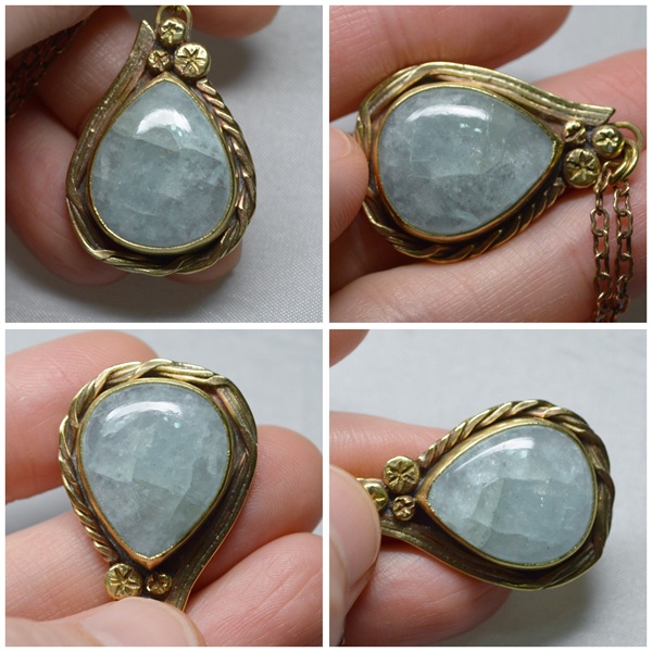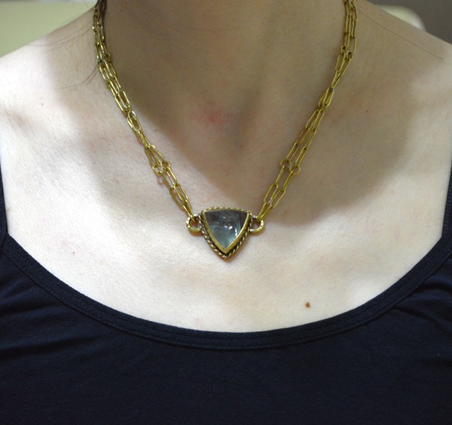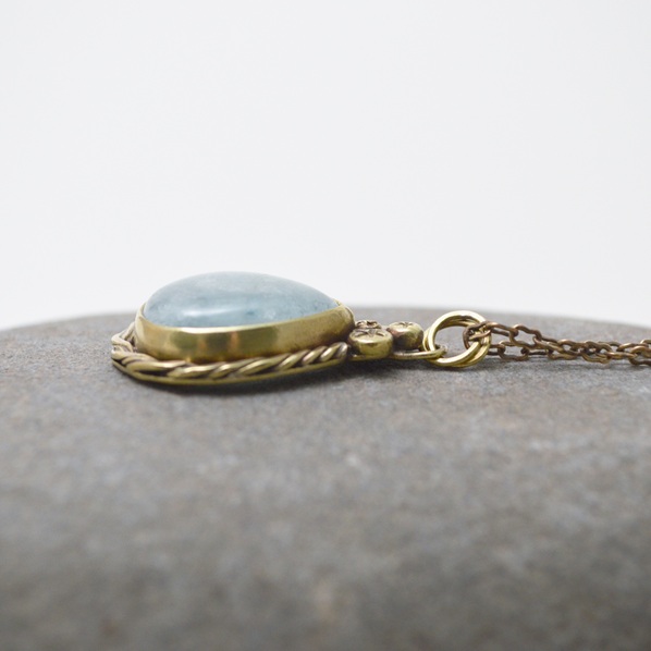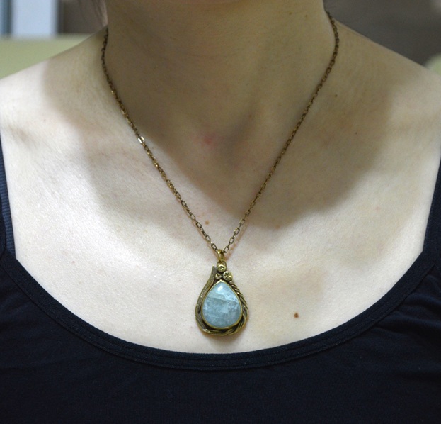 – 黃銅墜 Brass Pendant, 海水藍寶 Aquamarine, 黃銅鍊 Brass Chain