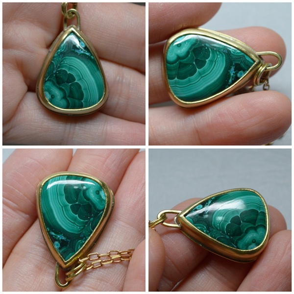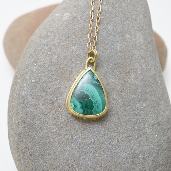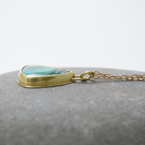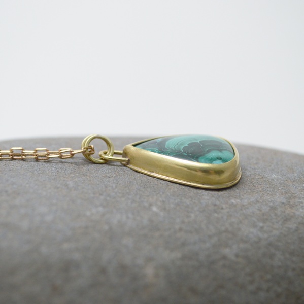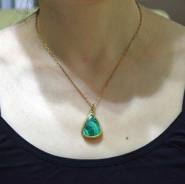 – 黃銅墜 Brass Pendant, 孔雀石 Malachite, 黃銅鍊 Brass Chain