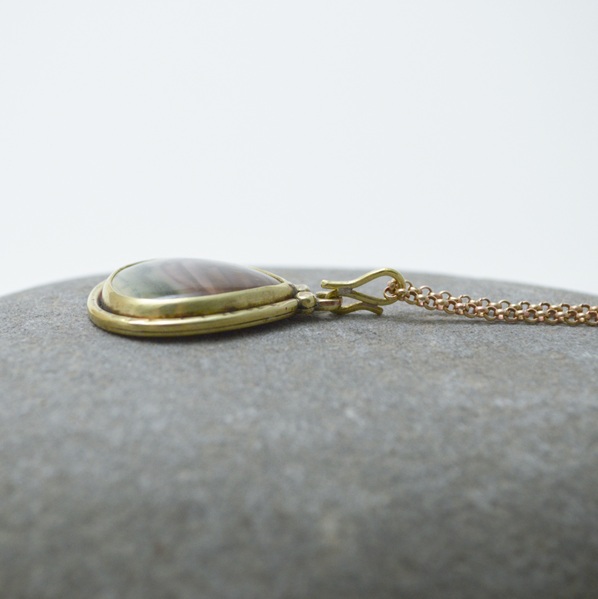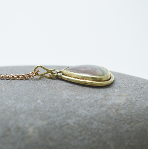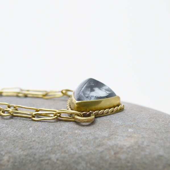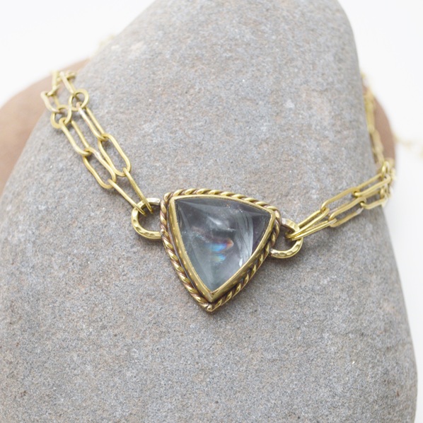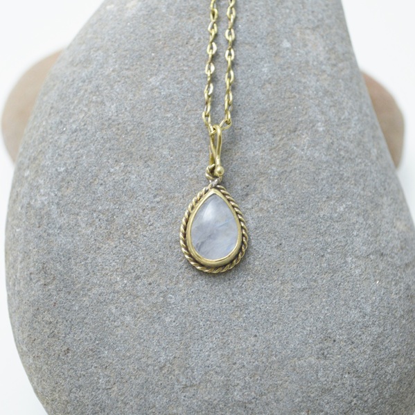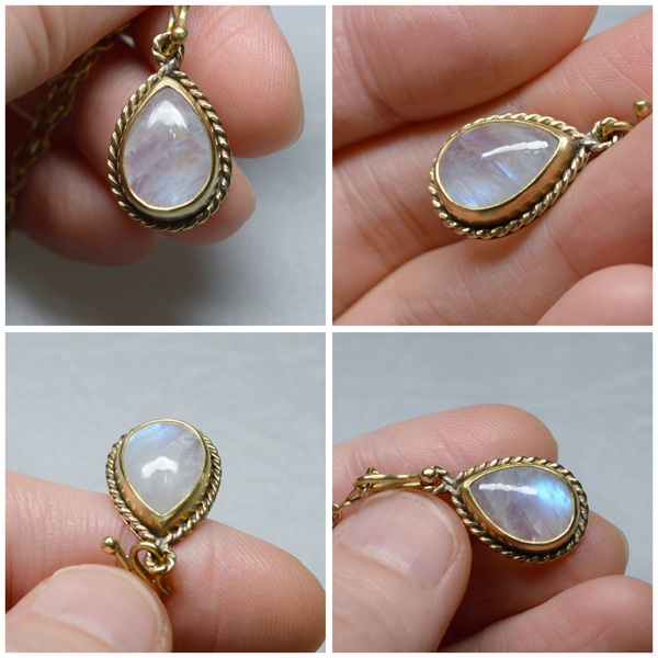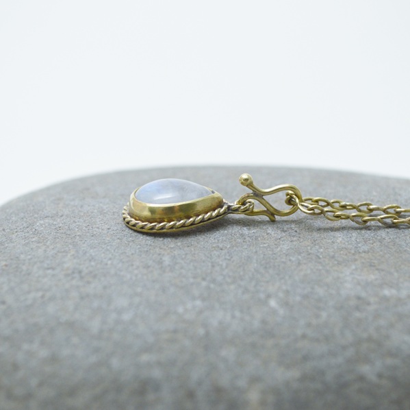 – 黃銅墜 Brass Pendant, 月光石 moonstone, 黃銅鍊 Brass Chain