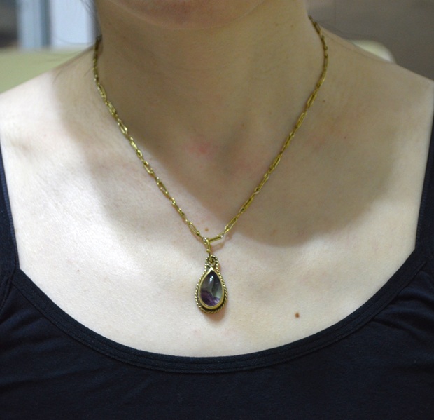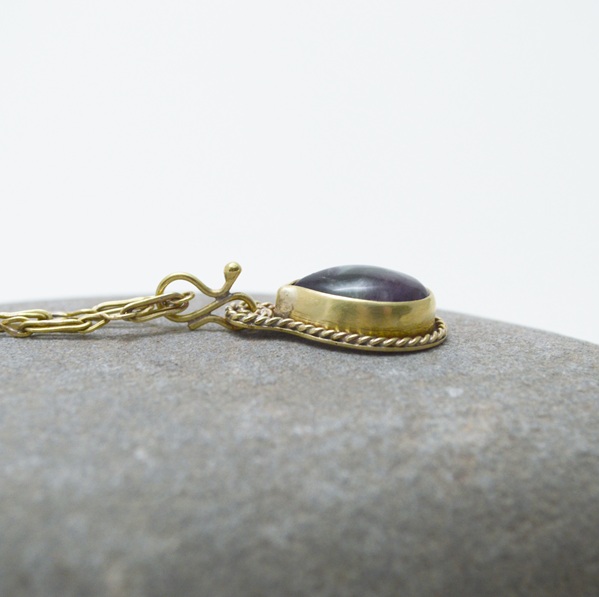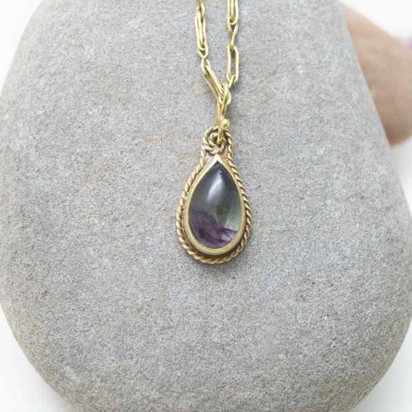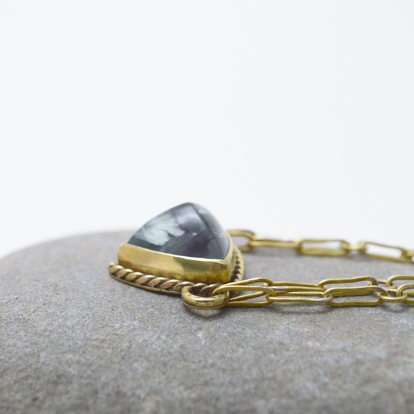 – 黃銅墜 Brass Pendant, 紫綠螢石 Bicolor Fluorite, 黃銅鍊 Brass Chain