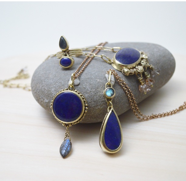 -黃銅 Brass, 青金石 Lapis Lazuli, 拉長石 Labradorite