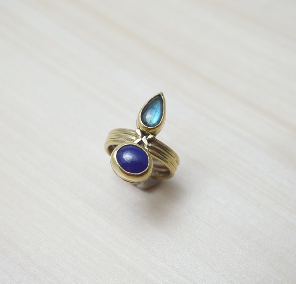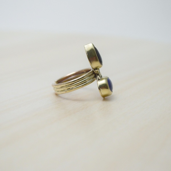 [ 心生活系列‧內在指引‧01-青金石・拉長石・黃銅開放戒圍戒指 Heartful Living‧Inner Guidance‧01-Lapis Lazuli・Labradorite・Brass Open Ring]