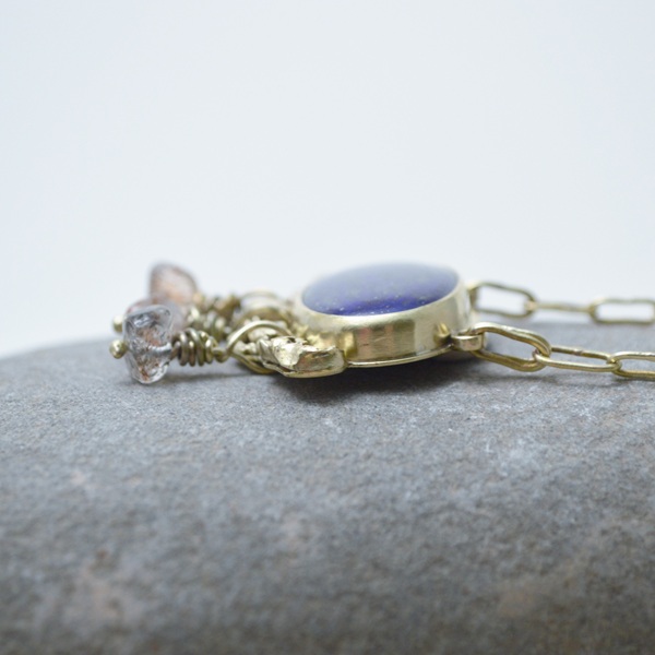 – 黃銅 Brass, 手工黃銅鍊 Handmade Brass Chain, 青金石 Lapis Lazuli, 髮晶珠 Rutilated Quartz Beads, 冰晶珠 Clear Quartz Bead