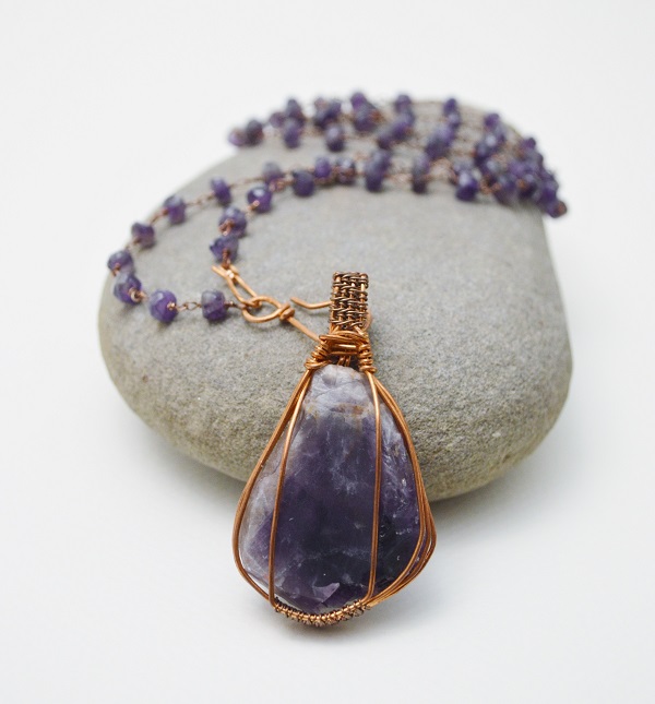 原石系列-冰河水晶(涅槃水晶)‧紅銅線編織墜‧紅銅手工鍊項鍊 Raw stone – Ice Quartz‧Copper Wire Wrap Handmade Chain Necklace